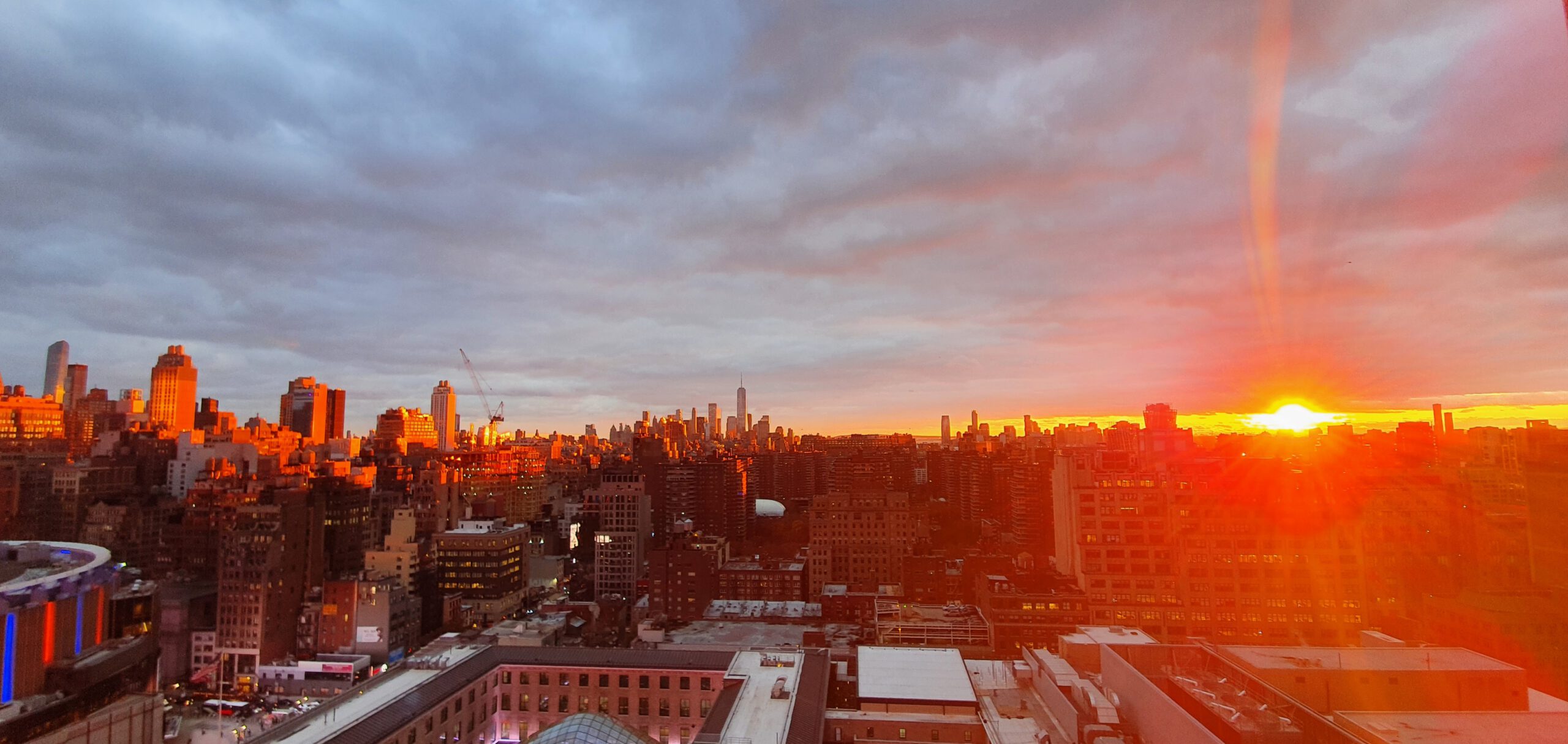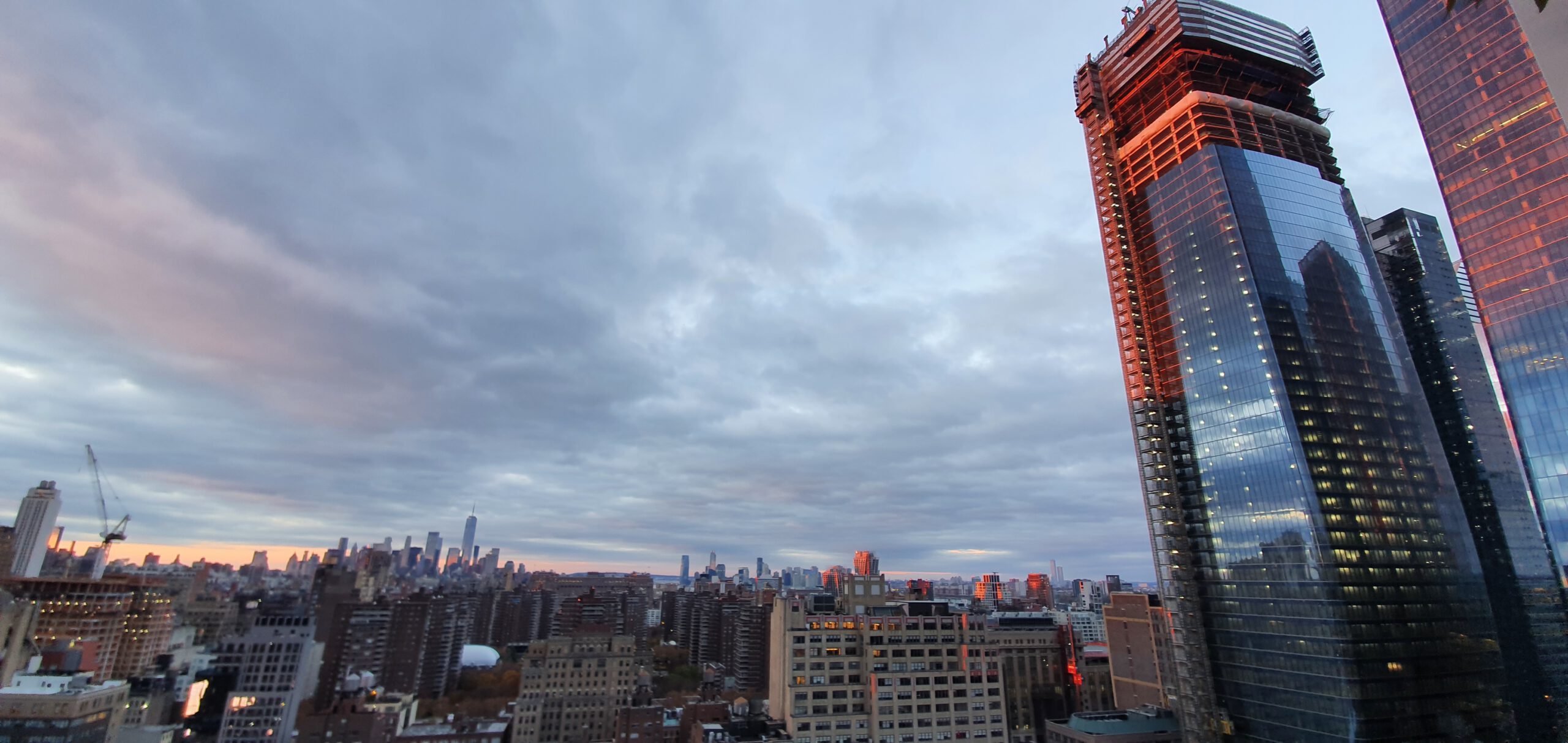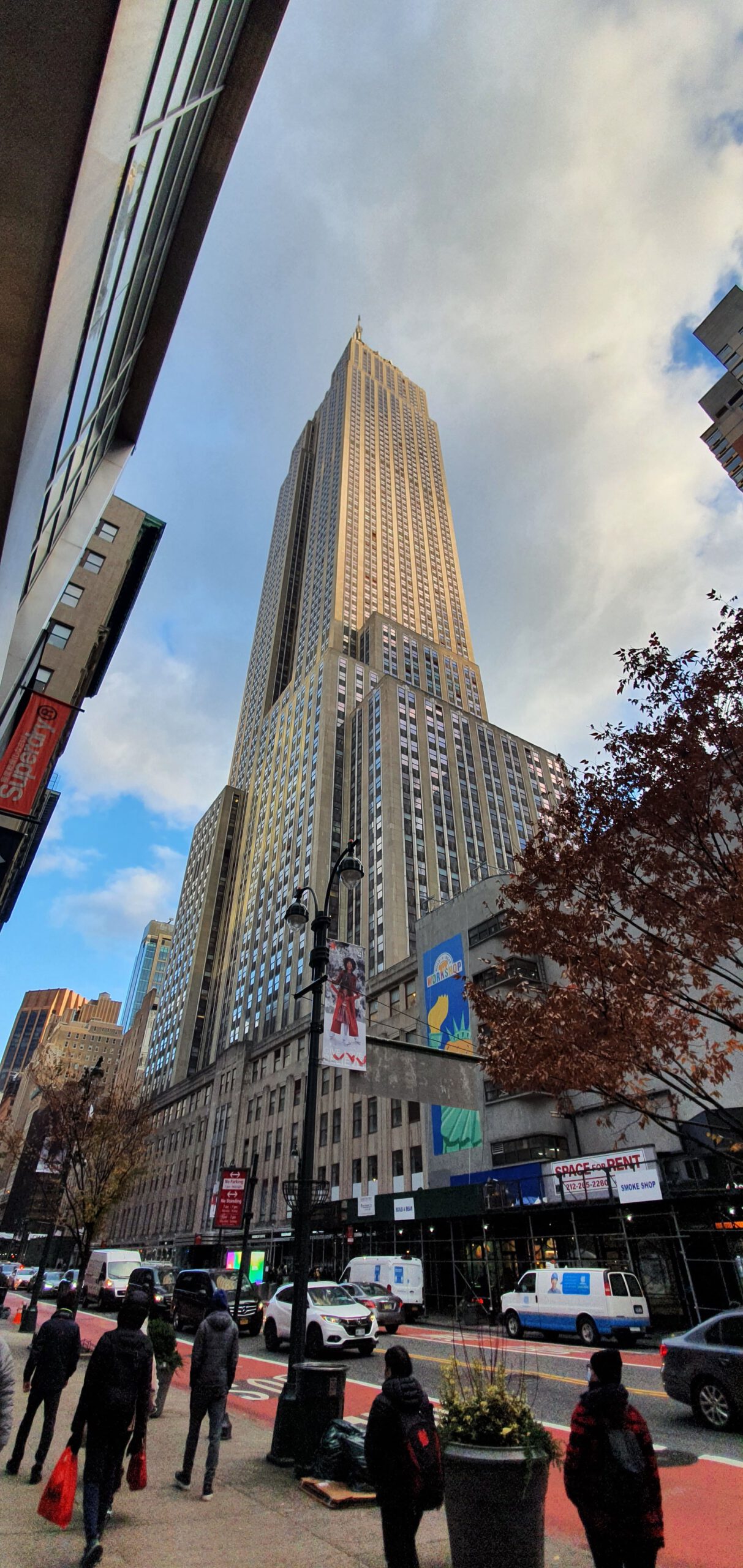 Da ich jetzt nachts eh wach im Bett liege kann ich auch ein paar Zeilen zu gestern verfassen. Los ging der Tag 4Uhr in Frankfurt, schlaftrunken sind wir gut durch einen fast leeren CheckIn zum Abfluggate gekommen. Auch dort war alles entspannt sodaß das Flugzeug fast pünktlich 8:40Uhr starten konnte. Der Flug war auch ganz angenehm, die Mischung aus Müdigkeit, einer Reisetablette und dem Frühstück (ich glaube Pasta und ein Heinecken hatte ich auch noch nie um die Zeit) hat gut geklappt, somit sind wir nach etwas über 7Stunden Flugzeit am New York JFK gelandet. Was wir überhaupt nicht auf dem Schirm hatten ist das am 25.11. in den USA Thanksgiving ist. Dieser Tag ist hier, neben Weihnachten, der wohl wichtigste Feiertag und so kamen wir an einem fast leeren Flughafen an. Völlig surreal. Der Vorteil für uns war natürlich kurze Wartezeiten an der Passkontrolle und beim Gepäck, das hat alles gut geklappt. Weiter mit der UBahn nach Manhattan und am Madison Square Garden raus. Auch hier hatten wir wohl das Privileg New York ohne Gedränge kennen lernen zu dürfen, auf den Straßen waren kaum Menschen unterwegs. Es gab zwar die jährliche Parade zu Thanksgiving, die war aber leider schon durch als wir angekommen sind. Wir haben dann unser Hotelzimmer gegenüber der Penn Station (Manhattans Bahnhof) bezogen und haben die nahegelegene Westseite von Manhattan erkundet. Der Line Park wurde vor ein paar Jahren eröffnet, dafür wurden die über den Straßen gelegenen Schienen der SBahn stillgelegt und bepflanzt. Von dort ließen sich alle möglichen Gebäude von Nahen betrachten da wir tw. nur ein paar Meter an Balkonen vorbei spaziert sind. Überhaupt ist es spannend zu entdecken welche verschiedenen Bauarten aus den ganzen Jahrzehnten Manhattan (neben den bekannten Wolkenkratzern) zu bieten hat. Durch den Park ging es Richtung Süden über den Chelsea Market weiter zum Ufer des Hudson River, dort wurden einige Grünflächen angelegt von wo wir eine geniale Aussicht auf den Südzipfel sowie den Stadtteil Brooklyn hatten.