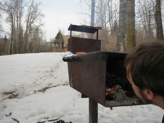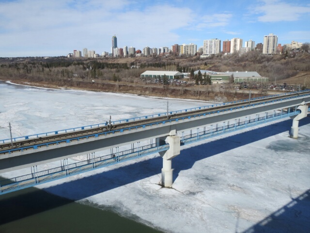 …ist eine recht junge Stadt, deren Geschichte man recht schnell mit 3 Stichpunkten abhandeln kann: 1795 begannen europäische Siedler die ersten Gebäude zu errichten, 1905 wurde es zur Hauptstadt Albertas ernannt, was einen sprunghaften Bevölkerungsboom von 4000 auf ca 78000 Bewohnern zur Folge hatte. Als 1947 im Norden Kanadas Öl gefunden wurde, wuchs die Zahl weiter. Überhaupt dreht sich hier alles um das Öl, welches ein paar 100km weiter nördlich in Fort McMurray abgepumpt wird. Edmonton schafft dafür die Infrastruktur und nicht wenige hier fliegen am Anfang der Woche „hoch“, arbeiten 10 oder mehr Tage durch, kommen zurück und haben paar Tage frei. Da der Verdienst dafür sehr hoch ist kann man sich mit spätestens 50 irgendwo ein Haus kaufen und zur Ruhe setzen. Allerdings hat dies für das Stadtbild zur Folge das du selbst im Zentrum („Downtown“) erschreckend wenig Menschen auf der Straße siehst, dazu wirken die um 1970 erbauten Hochhäuser recht grau und hässlich. Viel zu entdecken gibt es also hier nicht, unser Fokus liegt nun auf abends. Vorgestern sind wir per pedes zum lokalen Eishockeyteam, den Edmonton Oilers, gefahren, welche in der NHL spielen. Wir hatten im 3. Oberrang echt gute Plätze und der Gegner aus Nashville wurde 5:1 weggeputzt. Anschließend noch Sherlock Holmes Pub eingekehrt, welcher mir tagsüber in Downtown aufgefallen ist, ein sehr cooles Haus inmitten der Wolkenkratzer. Gestern passierte tagsüber nicht viel, Lebensmittel kaufen, Burger vorbereitet und abends mit Joleen, Philipp und paar Freunden von ihr im verschneiten Park angegrillt. Es war zwar echt eine zähe Geschichte den Grill mit Briketts und Feuerzeuggas (!) in Gang zu bekommen aber als die Kohle erst einmal glühte umso cooler. Das Bild oben zeigt in etwa die Downtown wie man sie gestern abend vom Park aus gesehen hat (die Stadt ist durch den Saskatchewan River in der Mitte geteilt, wir wohnen und waren im südlichen Teil). Für heute steht die Entdeckung der Edmonton Mall (mit über 800 Läden größtes Einkaufszentrum Nordamerikas, angeblich mit eigener Achterbahn und Wasserrutschenerlebnisbad) auf dem Programm, ich bin gespannt 🙂